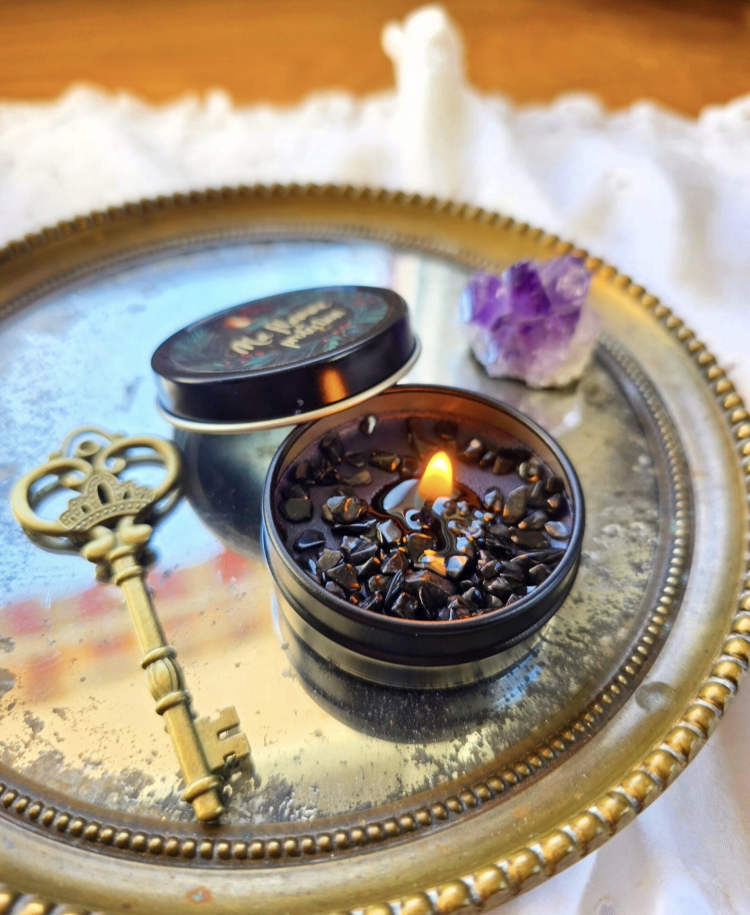 Inclus : graviers d’obsidienne noire (protection & bannissement, renforcement du sentiment de sécurité énergétique)