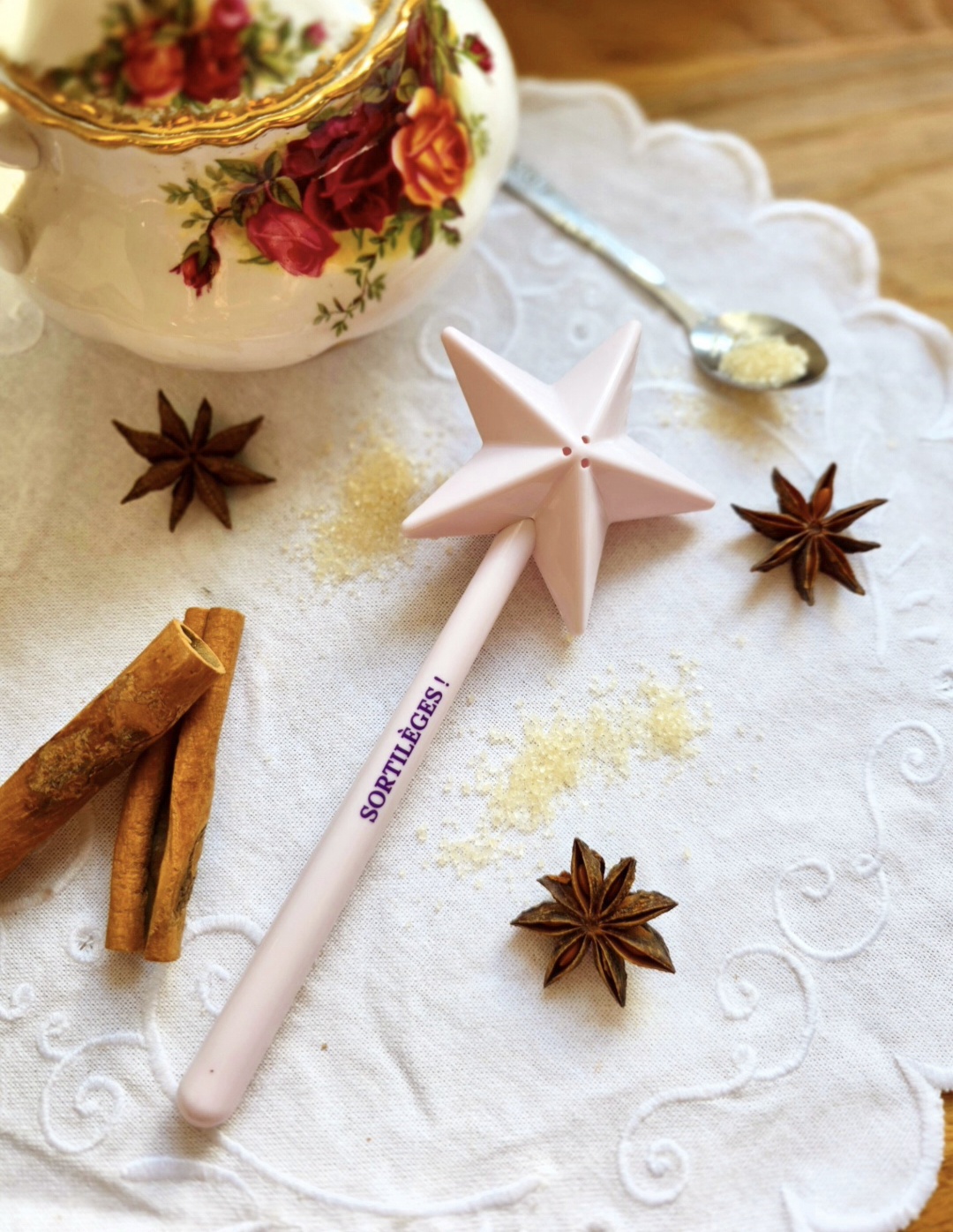 Sucrière magique en forme de baguette, inscription « Sortilège ! »