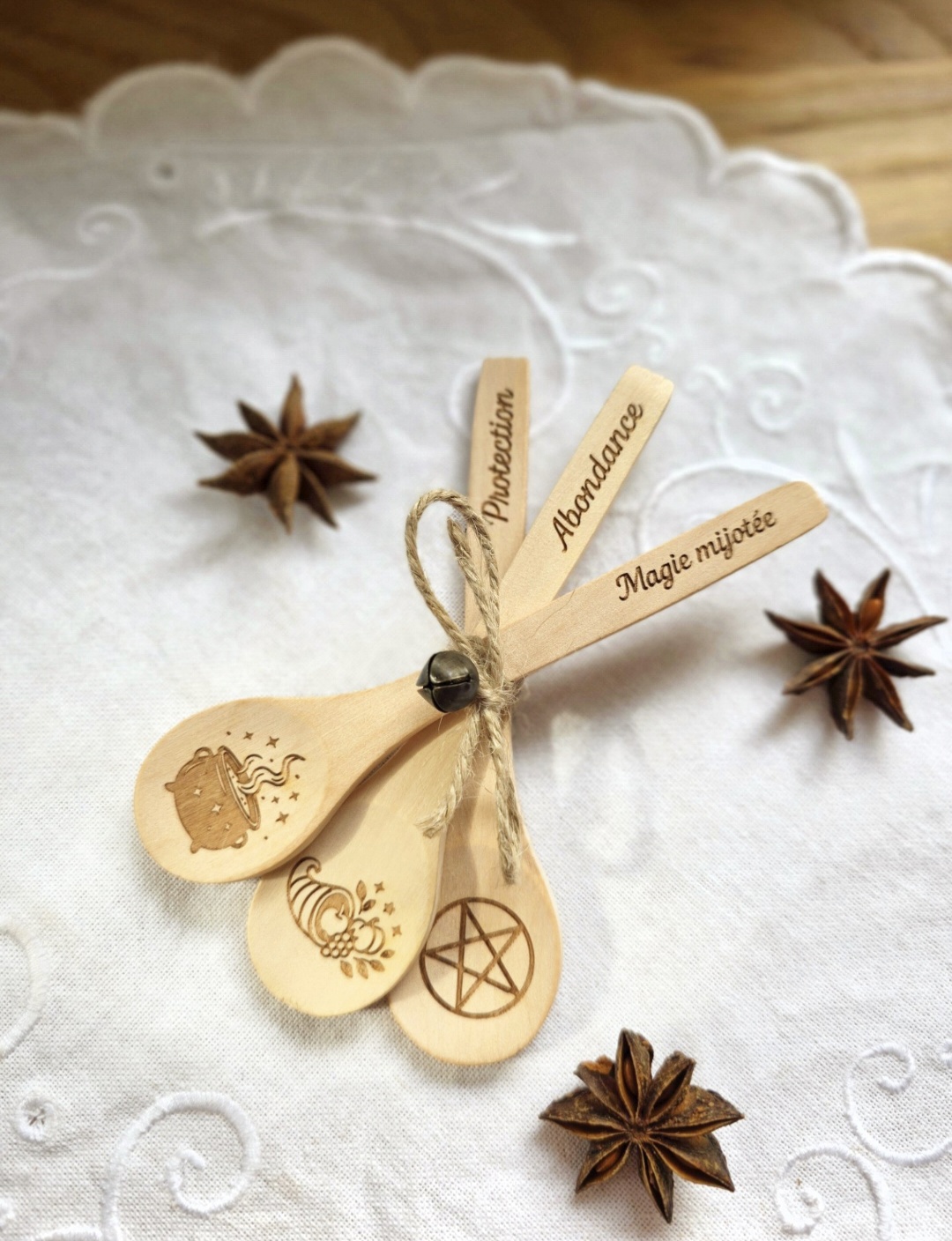 Pour saupoudrer vos préparations avec intention : cannelle protectrice à saupoudrer près de la porte d’entrée, cacao réconfortant, sucre pour l’attraction des bonnes énergies !