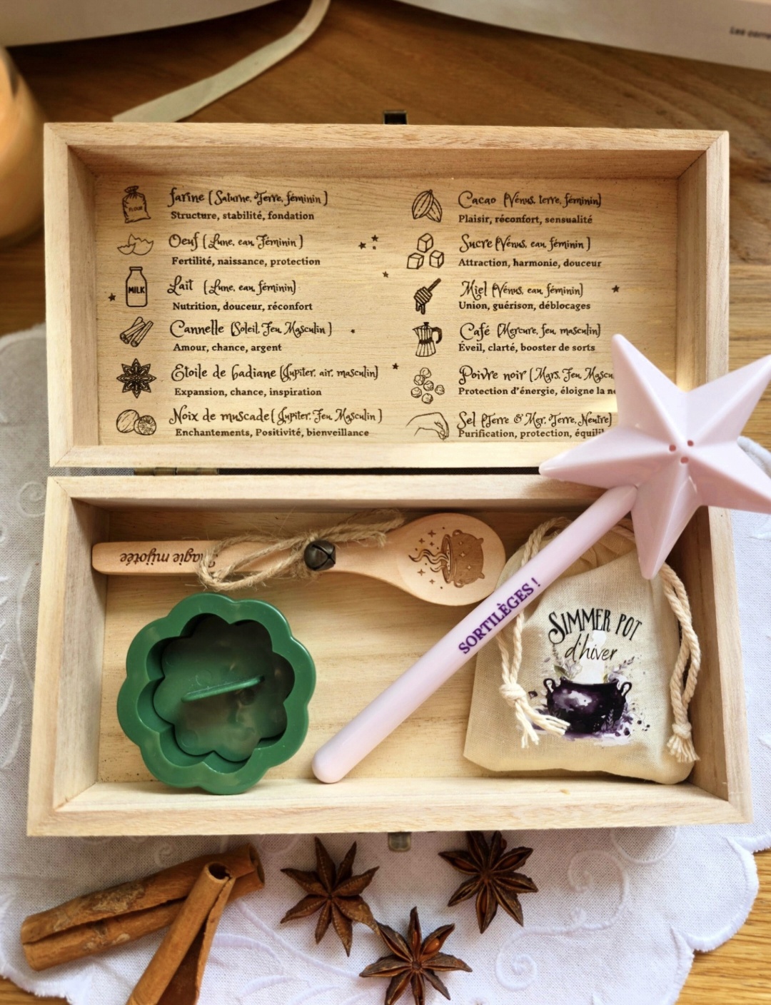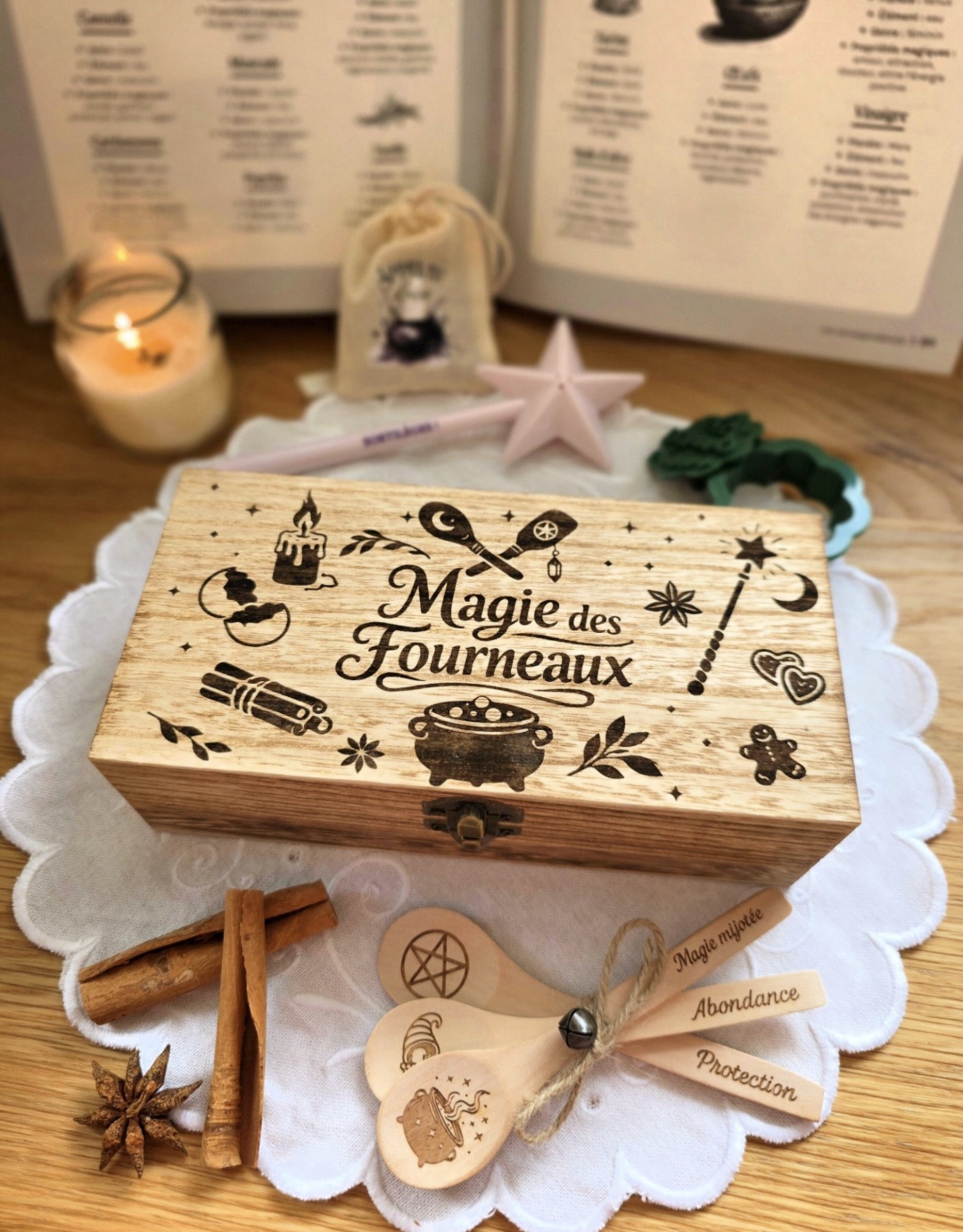 Intérieur gravé “Ingrédients magiques” pour vous guider lors de vos recettes enchantées