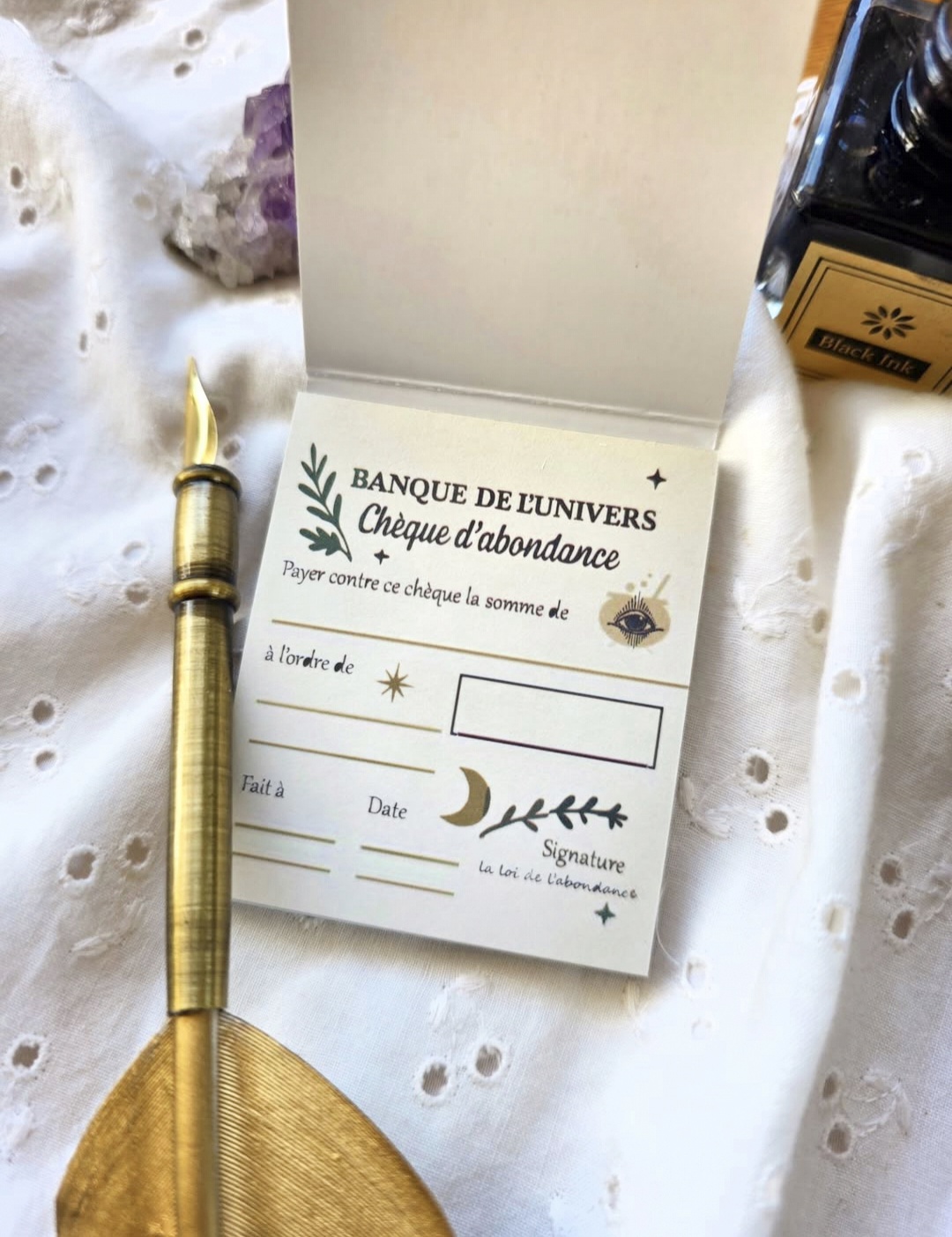 • Accompagnée de : sa fiche sortilège explicative pour remplir le chèque d’abondance